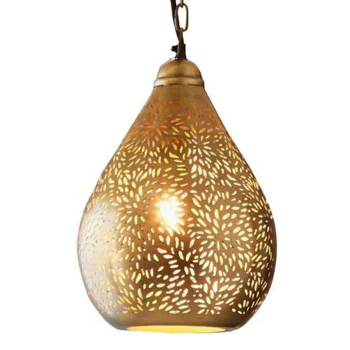 An impressive style featuring a delicately-patterned perforated shell. When unlit the exterior shows the delicate perforations, when illuminated the interior light radiates throughout the space.